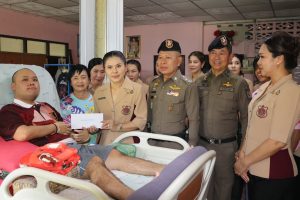 พร้อมนี้ พล.ต.อ.ธนายุตม์ วุฒิจรัสธำรงค์ ที่ปรึกษาพิเศษ ตร. และ คุณนภัสนันท์ วุฒิจรัสธำรงค์ อุปนายกสมาคมแม่บ้านตำรวจ ได้เป็นตัวแทน สมาคมแม่บ้านตำรวจ มอบเงิน และเครื่องอุปโภคบริโภคเพื่อช่วยเหลือครอบครัวข้าราชการตำรวจที่ได้รับบาดเจ็บ อันเป็นการบรรเทาความเดือดร้อน และส่งเสริมขวัญกำลังใจให้กับข้าราชการตำรวจ ที่ได้อุทิศตนเสียสละในการปฏิบัติหน้าที่