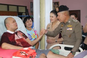 เดินทางมาส่งมอบกำลังใจให้ จ.ส.ต.ธนวัต นิลวงศ์ ผบ.หมู่ ปค.ศฝร.ภ.7 ที่ได้รับบาดเจ็บจากการติดตามจับกุมผู้กระทำผิด เมื่อวันที่ 16 มกราคม 2564 เป็นเหตุให้มีอาการป่วยติดเตียงช่วยเหลือตนเองไม่ได้