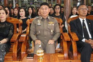 เข้าร่วมฟังสวดอภิธรรมศพ ร.ต.อ.จตุรงค์ วัฒนไพรสาณฑ์ นักบิน (สบ 1) งกบ.บ.ตร. ที่เสียชีวิตในขณะปฏิบัติหน้าที่ในเหตุการเครื่องบิน บ.ทวินออตเตอร์ ของ บ.ตร. ตกบริเวณทะเลใกล้กับท่าอากาศยานหัวหิน อ.หัวหิน จว.ประจวบคีรีขันธ์